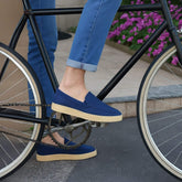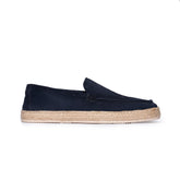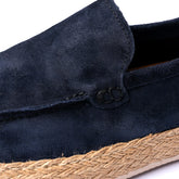 Sommer -Espadrilles für Männer im blauen Wildleder mit gewebten Seilsohle. Lässiger schicker Stil, leicht und atmungsaktiv. Perfekt für Freizeit oder Feiertage.