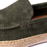 Herren -Espadrilles im grünen Wildleder mit geflochtenem natürlichen Seilsohle. Das Eugenio -Modell kombiniert die Verfeinerung der Wildlederhaut mit der Sommerleichte der klassischen Espadrilles und bietet Komfort und Stil für die heißesten Tage. Ideal für einen ungezwungenen, aber gut geführten Look, perfekt mit Jeans oder Leinenhosen.
