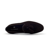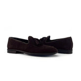 Tutto lo stile e la qualità Made in Italy dei nostri mocassini uomo con nappine, in vera pelle camoscio color marrone e la suola in gomma, fatti a mano da artigiani italiani.