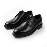 LUCREZIO è la scarpa elegante da uomo in versione Derby che incarna la purezza delle linee classiche e l’eccellenza della manifattura italiana. Realizzata in vera pelle liscia nera con lavorazione artigianale Made in Italy, questa scarpa rappresenta il punto d’incontro perfetto tra eleganza formale e comfort quotidiano. La suola in gomma leggera e flessibile assicura stabilità e grip senza rinunciare alla raffinatezza di un profilo sottile. Il design pulito e senza cuciture sulla punta rende LUCREZIO un modello estremamente versatile: ideale con completi sartoriali per cerimonie e occasioni formali, ma perfetto anche per l’ufficio o eventi business.